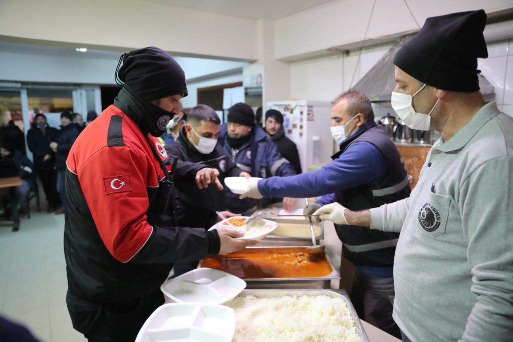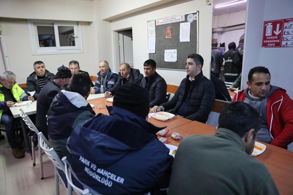 Başkan Gökhan Yüksel, konuşmasının ardından karla mücadele ekipleriyle beraber yemek yedi.