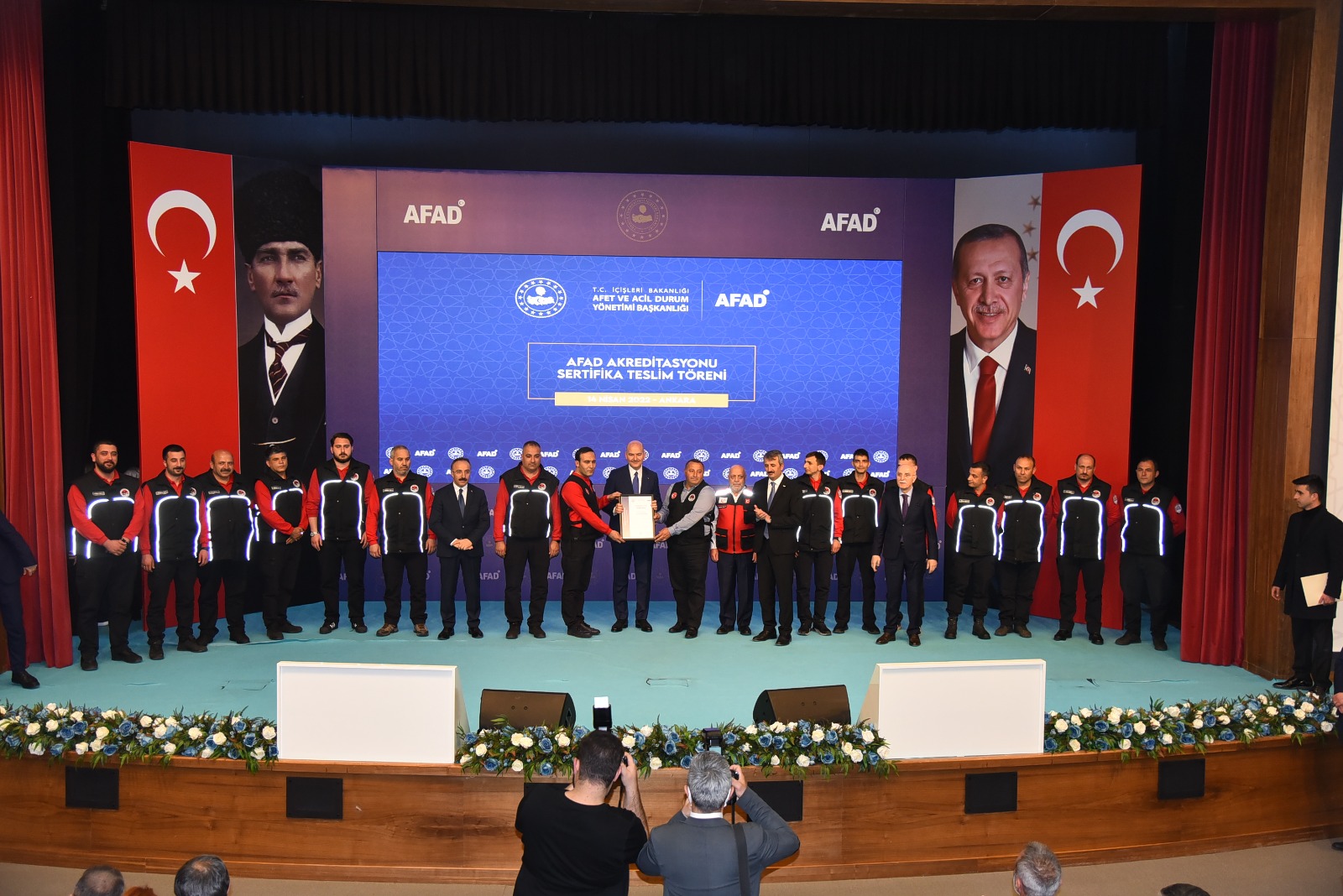 Törende hazır bulunan Kartal Belediyesi Arama Kurtarma Ekibine, İçişleri Bakanı Süleyman Soylu tarafından Kentsel Arama Kurtarma Arması ve Akreditasyon Sertifikası takdim edildi.