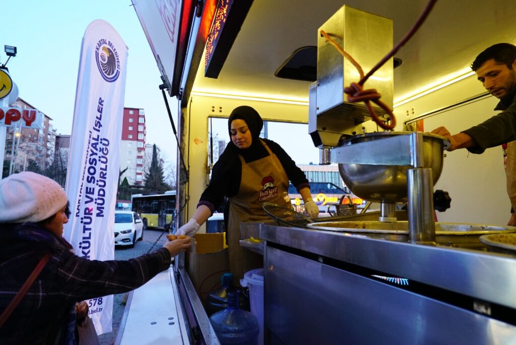 Mübarek üç ayların son kandili olan Berat Kandili için vatandaşlara lokma ikramı yapmak isteyen Kartal Belediyesi Sosyal Yardım İşleri Müdürlüğü, ilçedeki belirli camilerin önüne konumlandırılan ikram araçlarından lokma dağıttı.