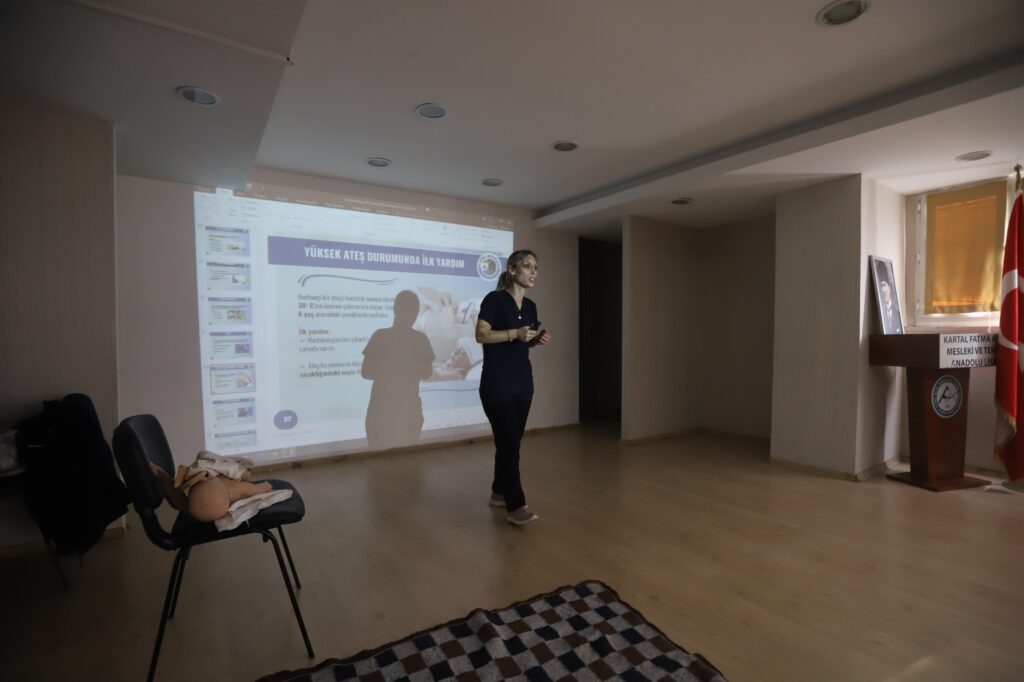Eğitimlerde İlk yardım Eğitim Merkezi Mesul Müdürü Sevil Hellaç ve Kartal Belediyesi Sağlık İşleri Müdürlüğü Başhemşiresi Hidayet Topuz, Fatma Aliye Mesleki ve Teknik Anadolu Lisesi öğrencilerine kaza anında hastaya ilk müdahalede bulunurken dikkat edilmesi gereken hususları uygulamalı olarak gösterdi. Gençlere yönelik olarak düzenlenen eğitimlerde ilk olarak 112 Acil Çağrı Hattı’nın hangi koşullarda ve nasıl aranacağı anlatılırken, bu hattı gereksiz kullanmanın yaratabileceği olumsuzluklardan da bahsedilerek gençlerin gerekli hassasiyeti göstermesi gerektiği ele alındı.