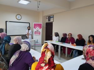 Projemiz kapsamında saydığımız kurslarımız dışında İŞKUR destekli kurslarımız var ocak ya da şubat ayından sonra açılacak kurslarımız da var. Kurslarımıza katılan kursiyerlerimiz eğitim görürken sertifika dışında birde İŞKUR’dan maaş alıyor. Bizim sağlık, kültür ve sosyal alanda da çalışmalarımız bulunmakta. Önümüzdeki ay ekim ayı takvimini yaparız. Önümüzdeki ay emzirme haftası, hasta hakları haftası ve menopozla alakalı gündem mevcut. Bu alanlarda oradaki doktorlarımızdan talepte bulunarak ortaklaşa proje yapıp bir seminer düzenliyoruz. İlkini 3 ekim çarşamba günü içerisinde yapacağız. Bu tip projelerimizi sosyal medyadan da duyuruyoruz. Gerek kursiyerlerimiz, gerekse vatandaşlarımıza sağlık semineri, aile içi iletişim, 1.sınıf çocukların psikoloğumuzun vereceği okula uyum, okula adaptasyonla alakalı semineri, Çift terapileri ve aile ilişkileri, madde bağımlılığı… O ayki gündem hangi konuysa o konuda söyleşi ve konferanslar yapmaktayız.