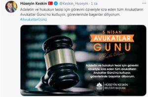 Sultanbeyli Belediye Başkanı Hüseyin Keskin, 5 Nisan Avukatlar Günün’nü resmi sosyal medya hesabından yayımladığı mesajla kutladı.